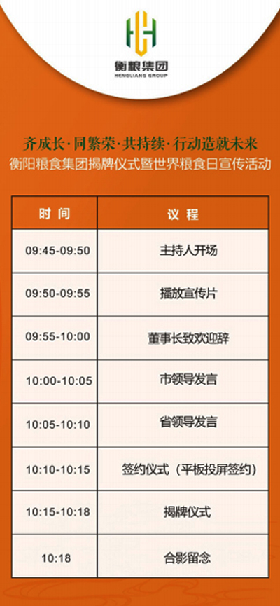 衡陽糧食集團(tuán)揭牌儀式暨世界糧食日宣傳活動時間及議程